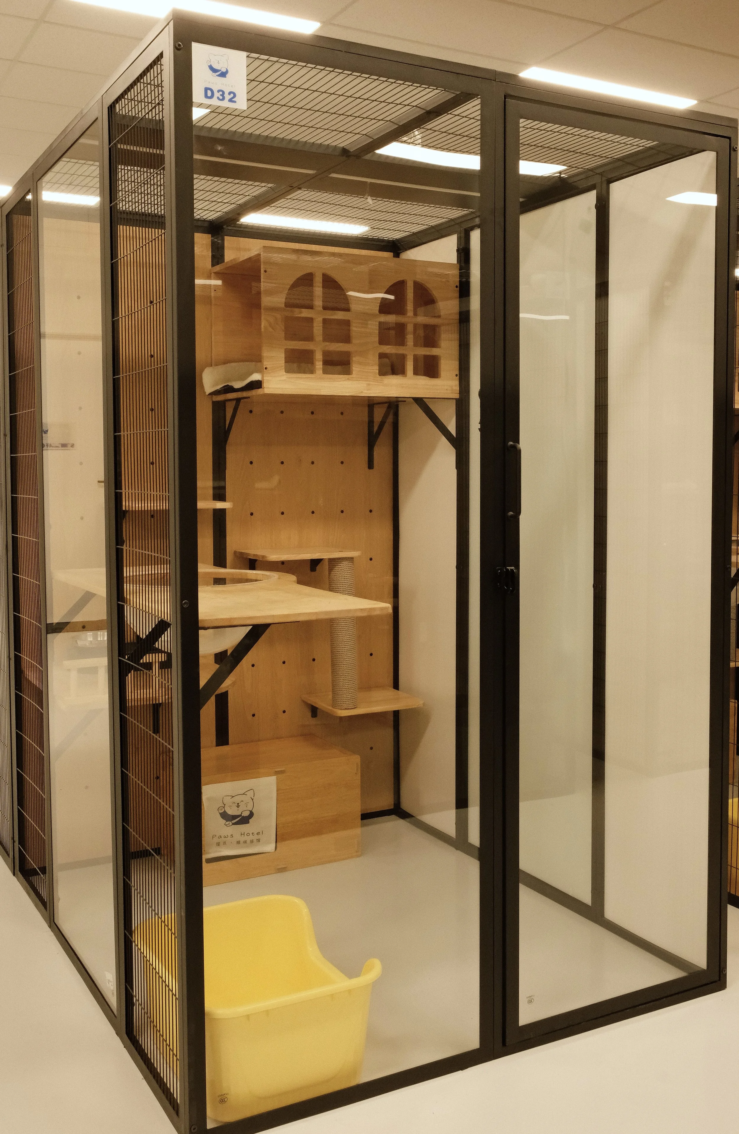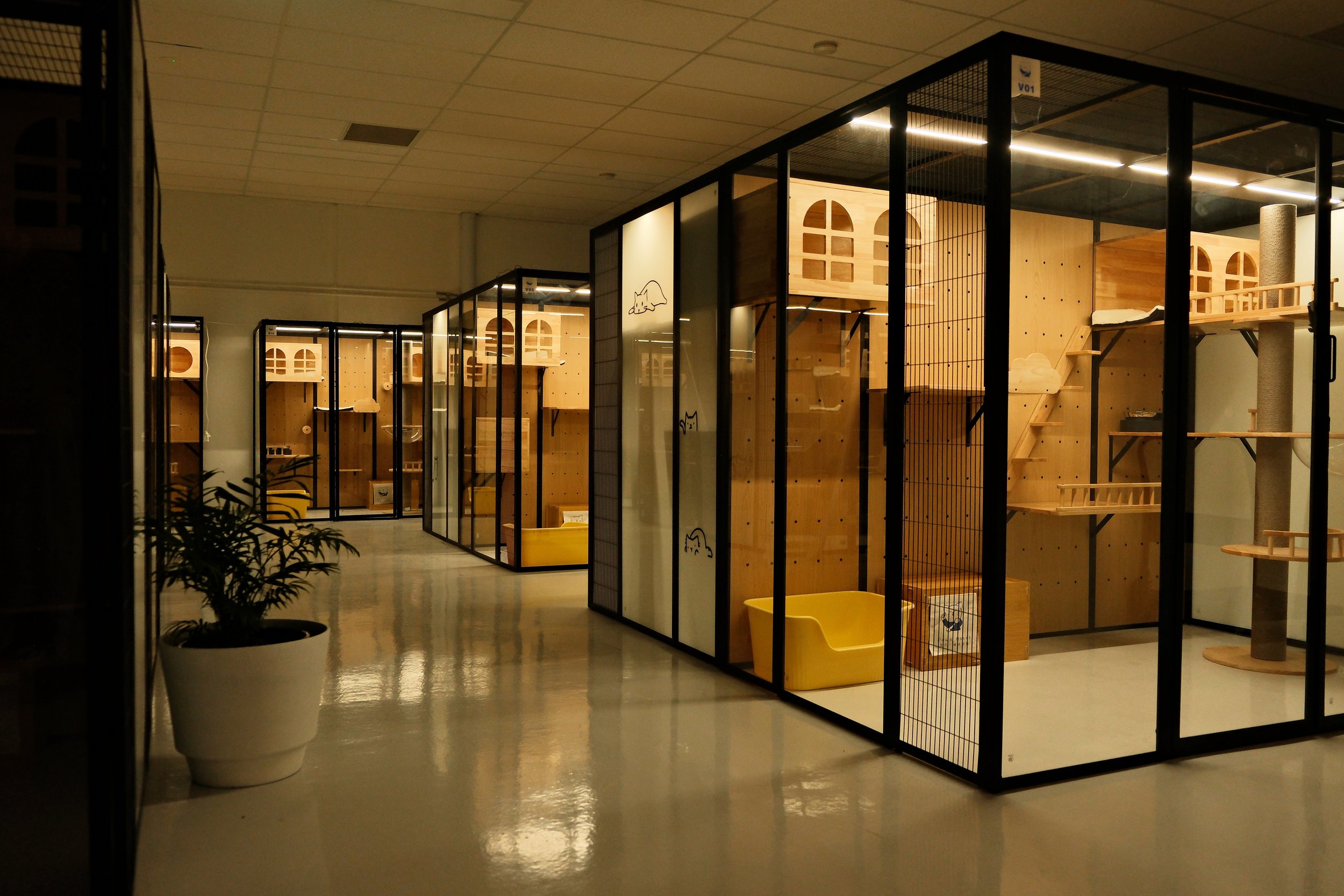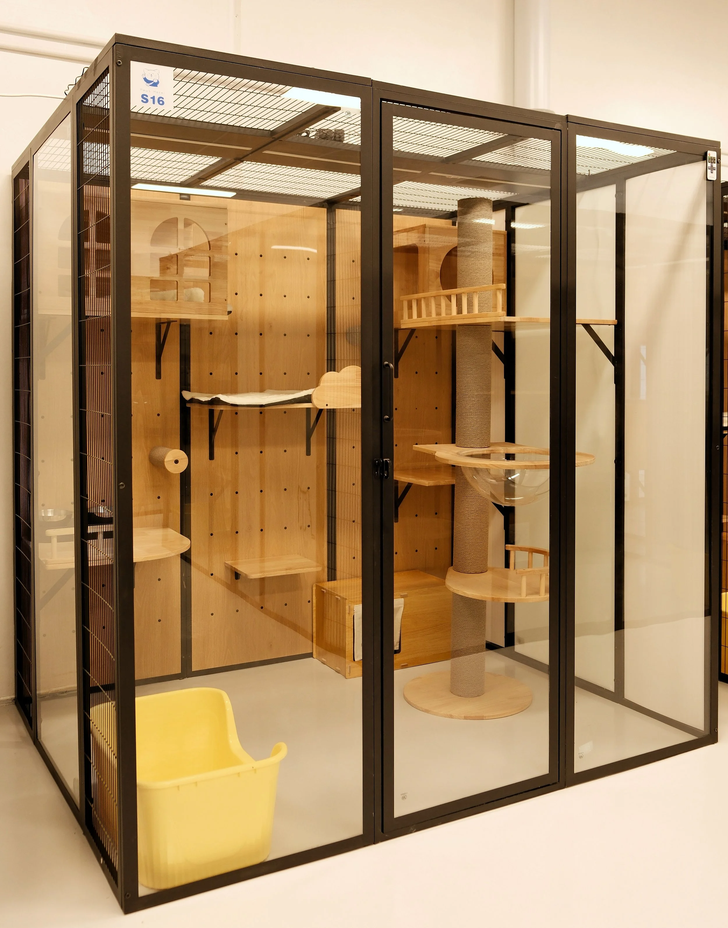Feliway spray before check-in helps reduce stress, while four-step disinfection keeps the room pristine.